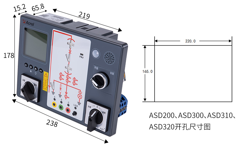 ASD系列開關(guān)柜綜合測控裝置具有一次回路模擬圖及開關(guān)狀態(tài)指示、高壓帶電顯示、自動(dòng)溫濕度控制、人體感應(yīng)自動(dòng)照明、語音提示、電參數(shù)測量及RS485通訊接口等功能,集操作、顯示于一體,直觀地體現(xiàn)柜內(nèi)元件的工...