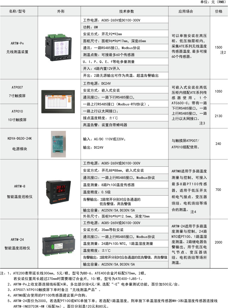 綜上所述,確定型號為:無線測溫裝置:ARTM-P9-300,1臺;無線測溫傳感器:ATE300,9個