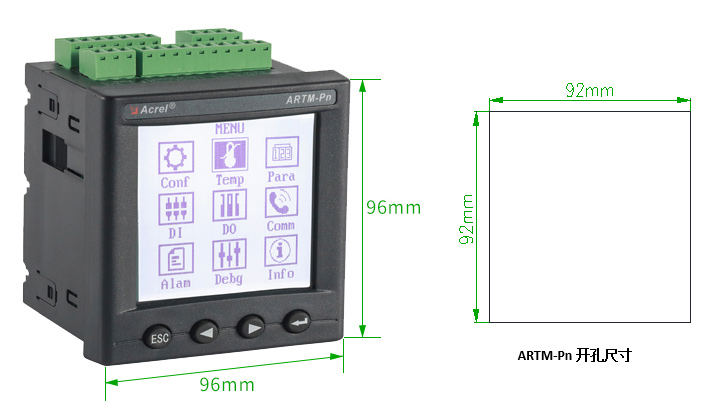 ARTM-Pn無線測溫裝置:ARTM-Pn無線測溫裝置可以單獨安裝在高壓柜、低壓抽屜柜內(nèi),每臺裝置可以接收18個傳感器的數(shù)據(jù),傳感器型號可選配ATE100、ATE200、ATE300。裝置帶有一路48...
