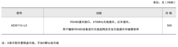 AEW110系列無線通訊轉換器主要用于輔助RS485設備進行無線組網,通過將通訊數據在RS485信號與無線信號之間互轉,完成普通RS485設備的無線通訊。需無線組網的RS485通訊設備。具體型號:AE...