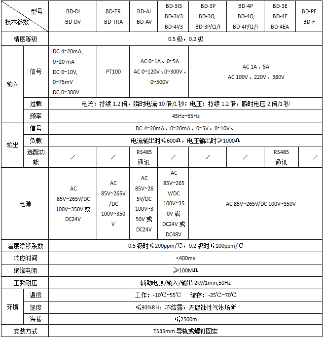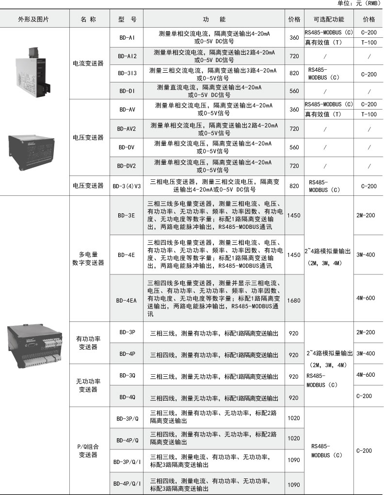 BD系列電力變送器是一種將電網中的電流、電壓、頻率、功率、功率因數等電參量,經隔離變送成線性的直流模擬信號或數字信號的裝置。電力系統具體型號:BD-AI技術要求:輸入AC 0-5A;輸出DC 4-20...