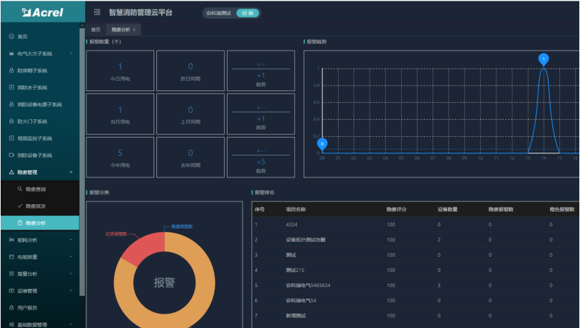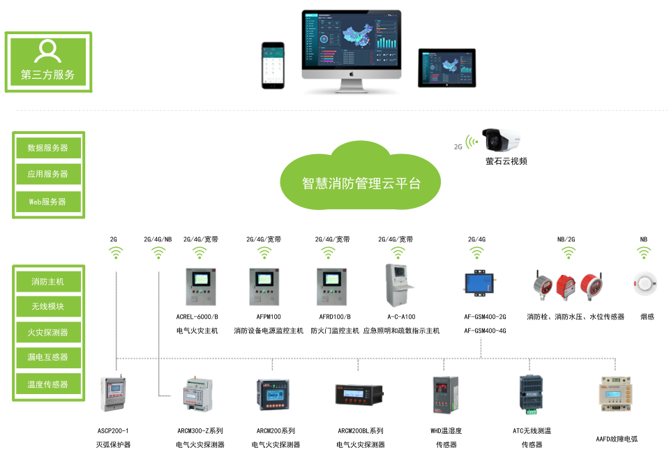 安科瑞智慧消防綜合管理云平臺基于物聯網、大數據、云計算等現代信息技術,將分散的火災自動報警設備、電氣火災監控設備、智慧煙感探測器、智慧消防用水等設備連接形成網絡,并對這些設備的狀態進行智能化感知、識別、定位,實時動態采集消防信息,通過云平臺進行數據分析、挖掘和趨勢分析,幫助實現科學預警火災、網格化管理、落實多元責任監管等目標。填補了原先針對“九小場所”和危化品生產企業無法有效監控的空白,適應于所有公建和民建,實現了無人化值守智慧消防,實現智慧消防“自動化”、“智能化”、“系統化”、用電管理“精細化”的實際需求。